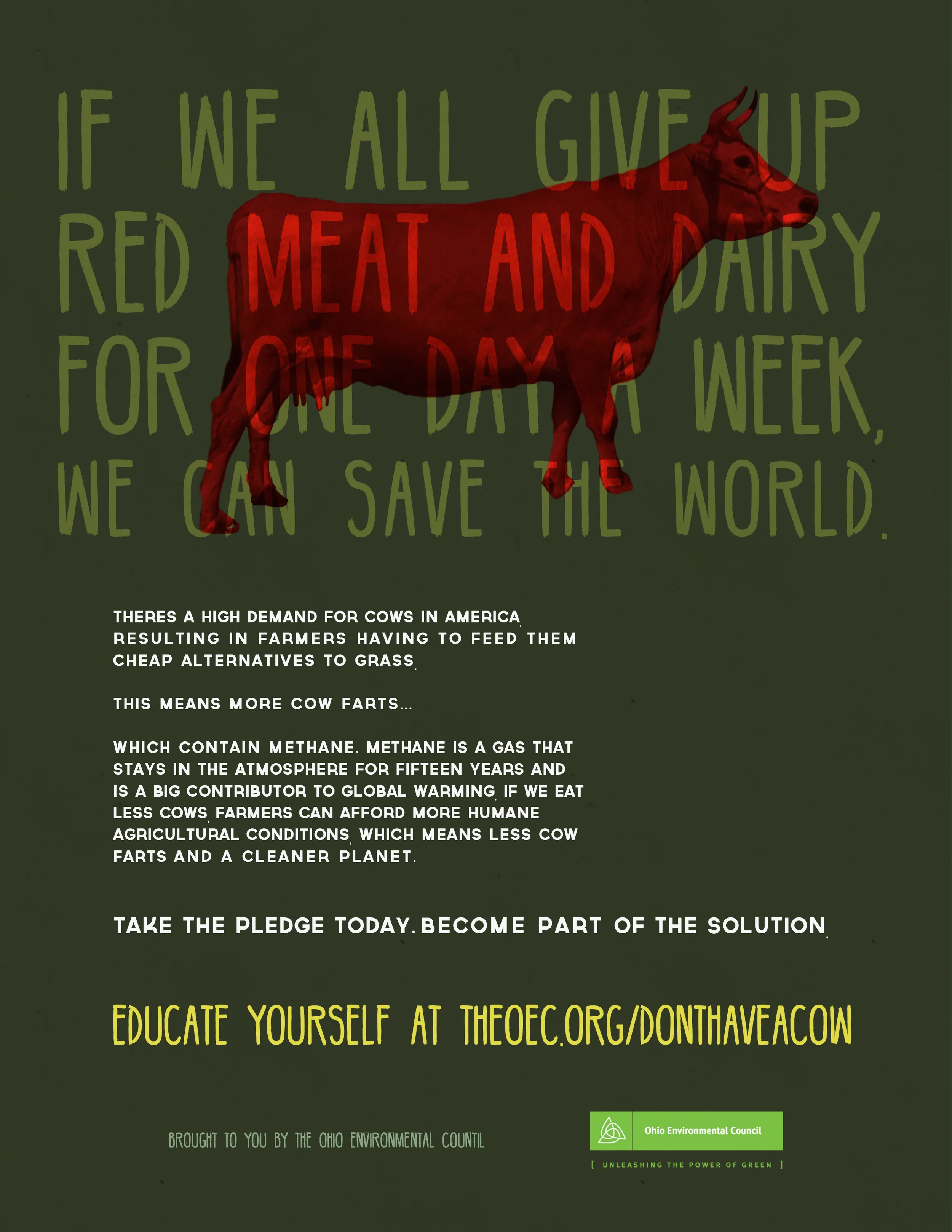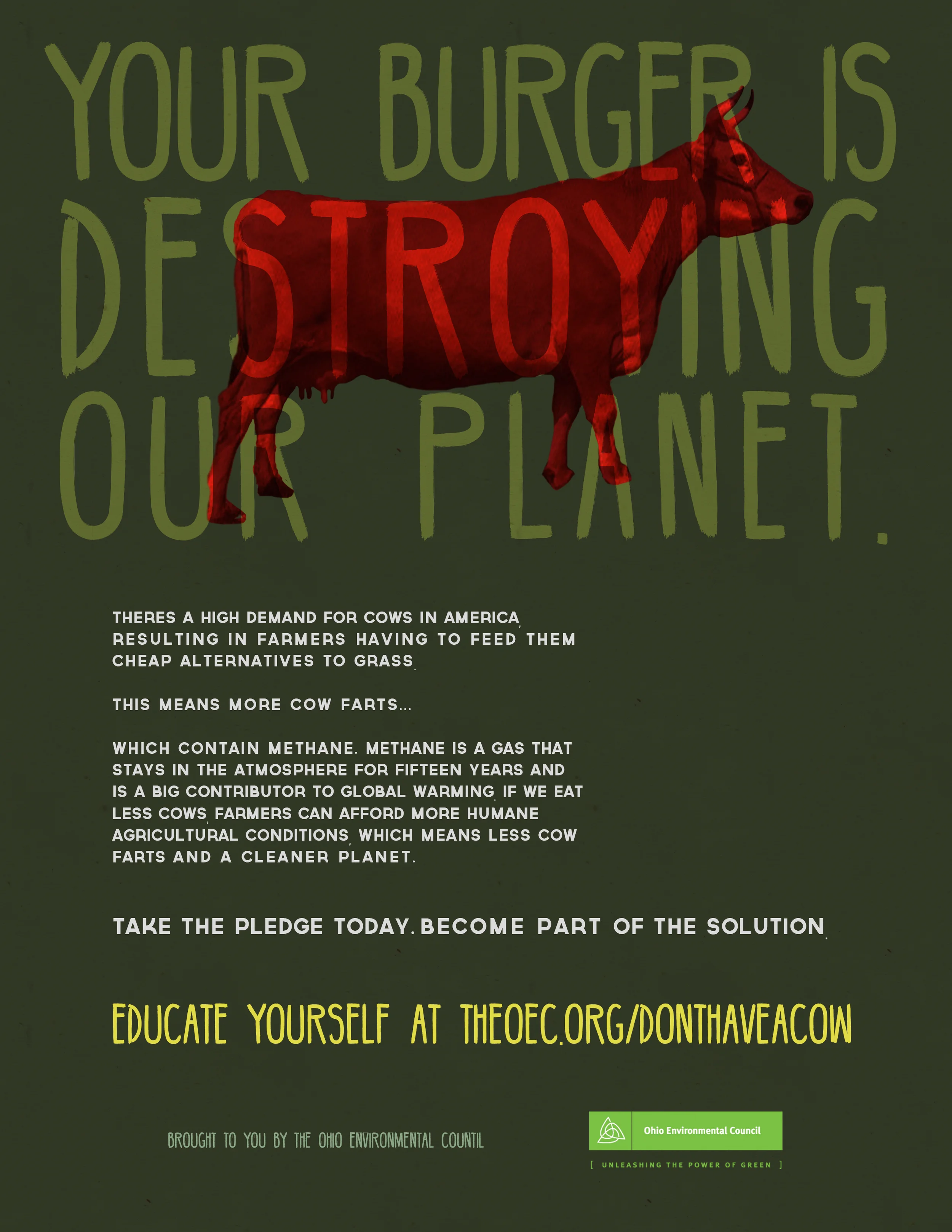 A campaign focused on the link between poor agricultural conditions and climate change, with hopes to get younger people to reduce the demand for cows